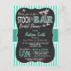 Stock the Bar Bridal shower invitation with cute chalkboard look font on teal, aqua turquoise blue stripes pattern. Vintage feel chalk fonts on cool blackboard background with martini glass and chalk stars. Invite guests to stock the bride's bar with wine, alcohol, etc.