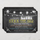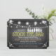 Add your own details to these fun and trendy chalkboard and string sparkle lights stock the bar party invitations.