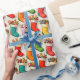 Santa has come, and filled all the colorful stockings with toys and sweets on this cute and fun holiday wrapping paper. Perfect for children's gifts!