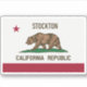 Stockton CA sticker with state flag in cloth looking design.