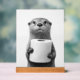 Stoic Otter Holding Toilet Paper Roll Black White Acrylic Sign