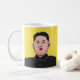 Souvernirs from Democratic People's Republic of Korea (North Korea). Coffee mug with two supreme leader Kim Jong-un images. Change mug style and customise background colour.