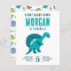 Stomp Chomp Rawr! Invite friends and family to join your little one for a dinosaur themed birthday party with this cute personalised invitation!