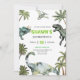 Get ready for a dino-mite celebration with this "Stomp, Chomp, Roar" birthday invitation, perfect for your little one's third birthday! The design features an exciting array of realistically illustrated dinosaurs, including a mighty T-Rex, a sturdy Triceratops, a soaring Pterodactyl, and a gentle Brontosaurus. Framed by lush prehistoric palm trees, this invitation sets the perfect scene for a Jurassic adventure. All the text is fully customisable, allowing you to easily add your child's name, age, and all the essential party details to invite your guests for a roaring good time!