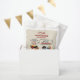 Dinosaurs dressed as pirates welcome you to a fun swashbuckling pirate-dinosaur birthday party for twin boys! The adorable t-rex and brontosaurus dinosaurs are dressed as pirates and have colourful balloons and gifts. Customise this treat bag with the boys' names and birthday.