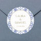This stone blue and white patterned design with gold writing is elegant, traditional and timeless. Perfect for dusty blue themed branding and events.