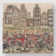 Stone coaster with an image of canal houses and bicycles in Amsterdam, Netherlands. The perfect travel souvenir by Velvet Escape.