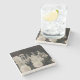 The coasters are gorgeous, a quality feel and heavy weight. They look like a precious archeological find. A rustic stone juxtaposed with a modern floral black and white print. I like the way the print goes slightly imperfect on the cut stone edges giving them a kind-of natural beauty.