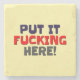 The coasters are gorgeous, a quality feel and heavy weight. They look like a precious archeological find. A rustic stone juxtaposed with a modern floral black and white print. I like the way the print goes slightly imperfect on the cut stone edges giving them a kind-of natural beauty.
