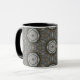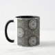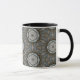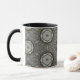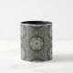This coffee mug showcases a refined, architectural pattern built from stone-like textures in slate grey, cool taupe, and subtle blue. Hexagons and triangles interlock in a mesmerising kaleidoscope that echoes the feel of tiled mosaics, cathedral ceilings, or mediaeval stonework. With a sleek black interior and a matching handle, this mug is ideal for those who appreciate subdued tones, structural beauty, and timeless design. A perfect blend of art and history in your hands.