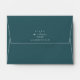 Not all wedding designs are created equal! The asymmetrical layouts for the pieces in this striking wedding set prove that. The interior of the matching wedding envelope shown here features a coordinating abstract background reminiscent of stone veined with glitter in shades of teal blue. Exterior deep sea green is optional. Easily add your names and address on the back flap using the provided template. Search ID647 to see all the coordinating pieces in this set.
