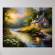 This peaceful painting of a stone house nestled in the woods along a gently flowing river captures the tranquillity and charm of nature. With rich textures, earthy tones, and serene water reflections, it brings a cosy, rustic ambiance to any space. Perfect for cabin décor, nature lovers, or anyone drawn to idyllic woodland scenes.