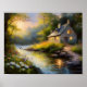 This peaceful painting of a stone house nestled in the woods along a gently flowing river captures the tranquillity and charm of nature. With rich textures, earthy tones, and serene water reflections, it brings a cosy, rustic ambiance to any space. Perfect for cabin décor, nature lovers, or anyone drawn to idyllic woodland scenes.