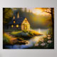 This peaceful painting of a stone house nestled in the woods along a gently flowing river captures the tranquillity and charm of nature. With rich textures, earthy tones, and serene water reflections, it brings a cosy, rustic ambiance to any space. Perfect for cabin décor, nature lovers, or anyone drawn to idyllic woodland scenes.stic