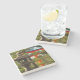 The coasters are gorgeous, a quality feel and heavy weight. They look like a precious archeological find. A rustic stone juxtaposed with a modern floral black and white print. I like the way the print goes slightly imperfect on the cut stone edges giving them a kind-of natural beauty.