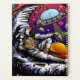Original vector art of a astronaut having moon cheese and passing a slice to a alien. Created in vector.
