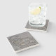 The coasters are gorgeous, a quality feel and heavy weight. They look like a precious archeological find. A rustic stone juxtaposed with a modern floral black and white print. I like the way the print goes slightly imperfect on the cut stone edges giving them a kind-of natural beauty.