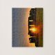 Photo jigsaw puzzle with gift box depicting the ancient 4000 year old monument of Stonehenge at midsummer dawn in the west of England.