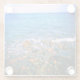 This glass coaster displays photography of colorful stones on the shore, with gentle waves flowing around them in shimmering swirls.