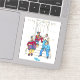 White, round sticker in 3x3 or other sizes is a great gift for yourself, moms, dads or grads. The image includes four colourfully dressed, stylish neighbours hanging out on a stoop with the phrase, "Your stoop or mine?" in purple with a "Stoop Stories" logo.