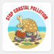 Stop Coastal Pollution Sea Turtle Environmental Square Sticker