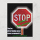 Stop Gang-stalking postcard w/ red stop sign and information on the back