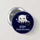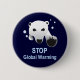 Stop Global Warming button with a polar bear asking us to protect his future. Perfect for Earth Day or anytime to remind us to save the planet.