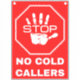 Stop No Cold Callers Sign - Red