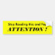 Stop Reading this and Pay, ATTENTION ! Bumper Sticker