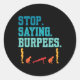 Stop Saying Burpees Exercise Bodybuilding Gag Joke Classic Round Sticker