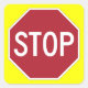 Stop sign based on the Manual on Uniform Traffic Control Devices on a yellow background, at a bargain price.