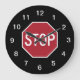 Unique Stop Sign Stop Time wall clock shows regulation traffic Stop Sign on a black background with white clock numbers. Perfect clock for urban apartments, family rooms, rec rooms, teenager's room. Thanks for shopping with Bizeeboy.