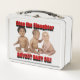 This is a standard metal lunchbox that appears to work just fine. We designed this box ourselves with an uploaded photo and custom text on the front and back. It looks absolutely beautiful except the front of the lunchbox is not centered like it shows in the photo. The print borders don't align with the inset flat part of the box where the preview photo online showed it perfectly centered in there. The back looks nice and centered though.