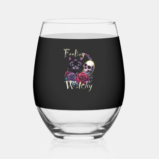 Starry Night Orange Tabby Cat Christmas Stemless Wine Glass