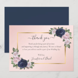 Navy Blue Blush Pink Gold Floral Thank You Card