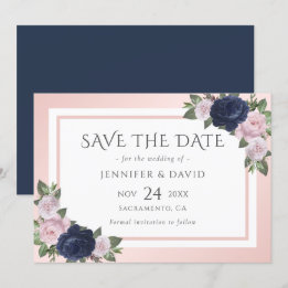 Elegant Navy Blue Gold Blush Pink Floral Save The Date