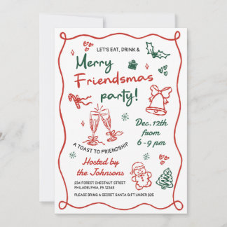 Retro  Hand Drawn Friendsmas Christmas Party