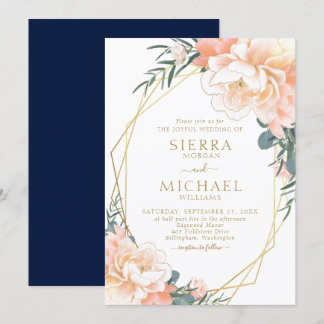 Modern Blush Pink Peach Peony Floral Wedding Invitation