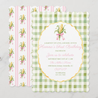 Preppy Grandmillennial Corn Harvest First Birthday Invitation