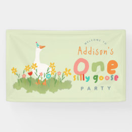 Girls One Silly Goose Summer Kids First Birthday Invitation