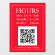 Store Hours Open Sign, QR Code, Red & White