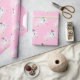Stork flying in clouds with baby in a blanket on pink background for baby girl gift