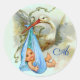 STORK BABY BOY SHOWER BLUE MONOGRAM , CLASSIC ROUND STICKER