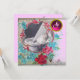Elegant ,funny vintage style floral design with a baby and flying stork among the beautiful pink,red roses,blue spring flowers and a vibrant, shiny ,pink,fuchsia 3D ruby gem stone. by Bulgan Lumini.
