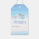 Hand painted whimsical stork delivering a new baby boy shower display card tags. Perfect for you to request your guests to display gifts unwrapped and labelled with this tag card to keep your shower on theme. Personalise with your own mother to be name and guests can reuse the card as a gift tag by hand writing their name. © Uniquely painted in watercolor and designed by Sarah Trett for www.mylittleeden.com on zazzle.