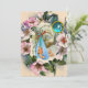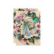 Elegant floral crown with dog roses, flowers ,colourful,vibrant vintage style design with a baby and flying stork among the beautiful romantic pink,red roses,teal blue gem by Bulgan Lumini (c).Easy to customise with your own text as an announcement card ,place cards ,save-the-date ,thank you cards , baby showers,child's birthday parties , or just about any event you wish!