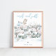Direct your guests with this stork boy winter baby shower cards and gifts sign. Featuring a sweet stork illustration with a snowy village in a soft watercolor style, this piece is perfect for a winter shower full of cosy seasonal charm. Place it on your gift table to guide guests where to leave their cards and presents while adding a decorative accent. Designed to coordinate with matching invitations and other signage in the stork winter baby shower collection.