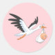 Stork Carrying a Baby Bundle Pink Classic Round Sticker