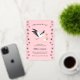 A stork is carrying a baby in a bundle. The baby is taking a selfie using a cellphone. Lovely and original baby shower invitation.