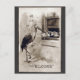 Hands are poking out a window to accept a delivery from a stork in this vintage birth announcement from 1909.